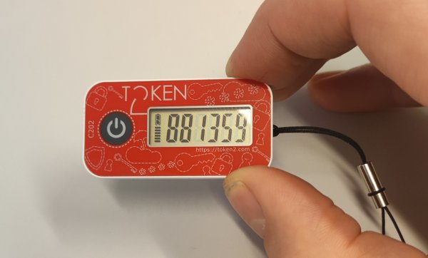 If you don’t want to use a software token, you can request a so-called hardware token. This is an external device which generates the token for your MFA-login.