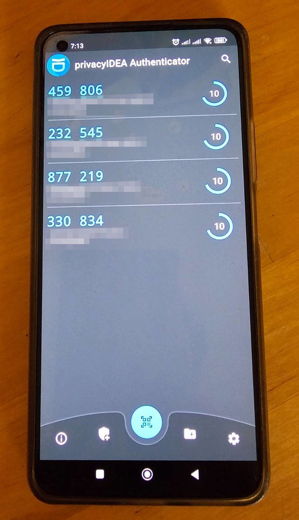 This is an example screenshot of the PrivacyIdea Authenticator app: